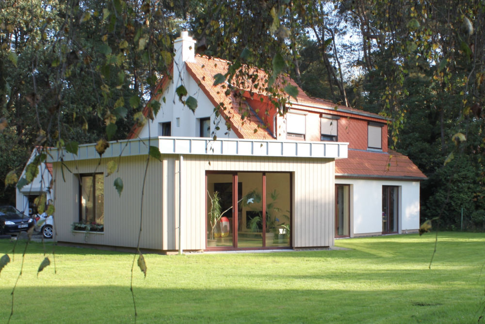 Bestehende Gebäude sollten im Zuge einer Sanierung oder Erweiterung den Erfordernissen des heutigen Energie standards angepasst werden. Eventuell bietet sich eine schrittweise Umsetzung der verschiedenen Maßnahmen an. Gerade deshalb ist eine wohl durchdachte Planung das A und O. Dabei passe ich Die Geometrie und Optik des Anbaus entweder dem bestehenden Gebäude an, oder er wird ganz bewusst durch abweichende Winkel und Neigungen abgesetzt. Auch die Wahl der Materialien und Farben verändert die Optik des Hauses ganz entscheidend.